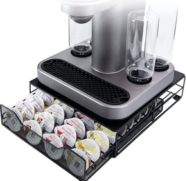 WIWIWISAM Soporte de metal para cápsulas Bartesian, capacidad de 36 cápsulas, cajón de almacenamiento de diseño moderno, color negro