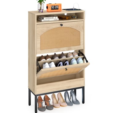 GIA Armario de Almacenamiento Minimalista Moderno con diseño de ratán, Natural, 2 Puertas
