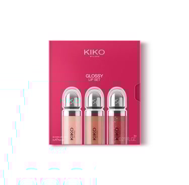 KIKO Milano Glossy Lip Set 03, Kit De Labios: 3 Brillos De Labios Hidratantes Efecto Volumen 3D