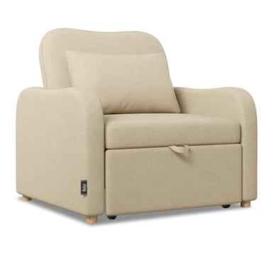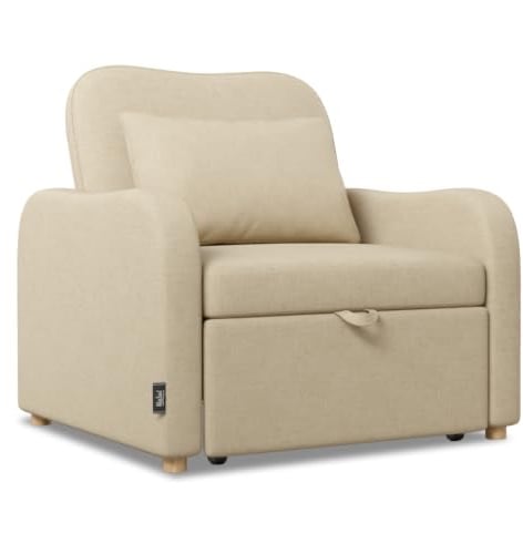 Nalui-Sofá Cama 1 Plaza 3 en 1 Buddy 92x97x90cm con Respaldo Ajustable 2 Posiciones y Almohada. Sofá Cama Individual de Lino, Soporta hasta 200Kg. Sillón Relax Reclinable con Reposabrazos, Beige
