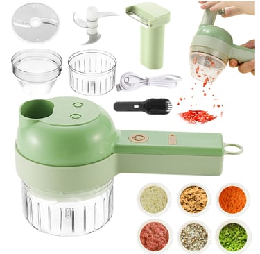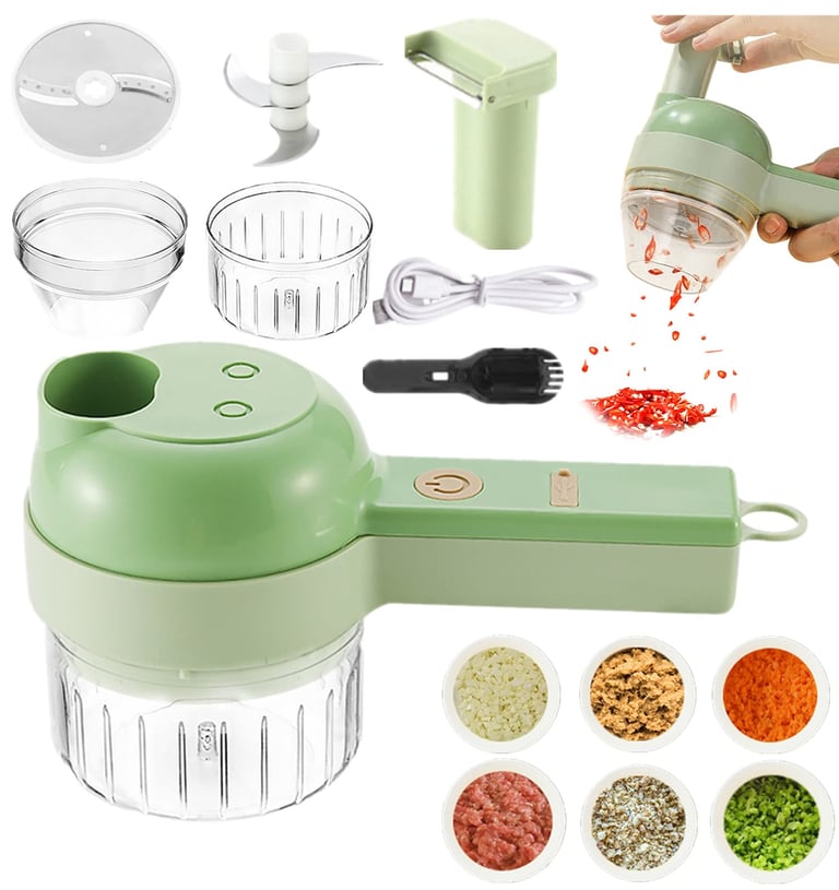 Picadora Electrica de Alimentos, Juego de Cortador de Verduras Multiusos 4 en 1para Verduras, Carne, patatas, Mini Procesador De Alimentos, Picadora de Verduras, Exprimidor Pelador con Carga USB