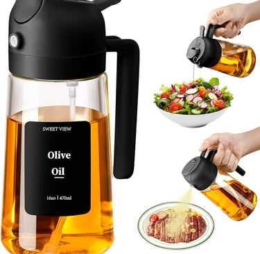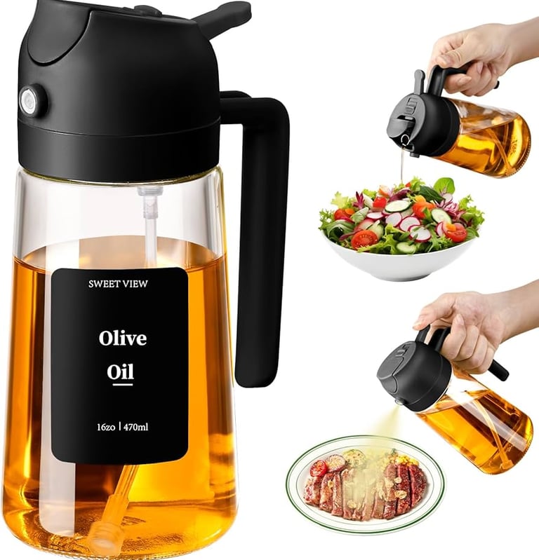 SWEET VIEW 470ml 2 en 1 Dispensador de Aceite y Pulverizador de Aceite, Vertedor Dispensador de Aceite de Oliva para, Cocina, Cocinar,Freidora de Aire,Ensalada, Barbacoa (Negro