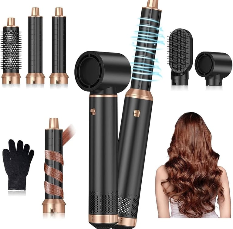 Souvik Cepillo de Aire Voluminizador 5 en 1, Multifuncional Secador de Pelo, con Hair Dryer, Alisador, Rizador Automático, Voluminizador, Tecnología Iónica, 3 Ajustes de Temperatura