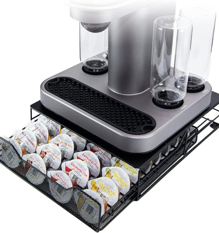 WIWIWISAM Soporte de metal para cápsulas Bartesian, capacidad de 36 cápsulas, cajón de almacenamiento de diseño moderno, color negro
